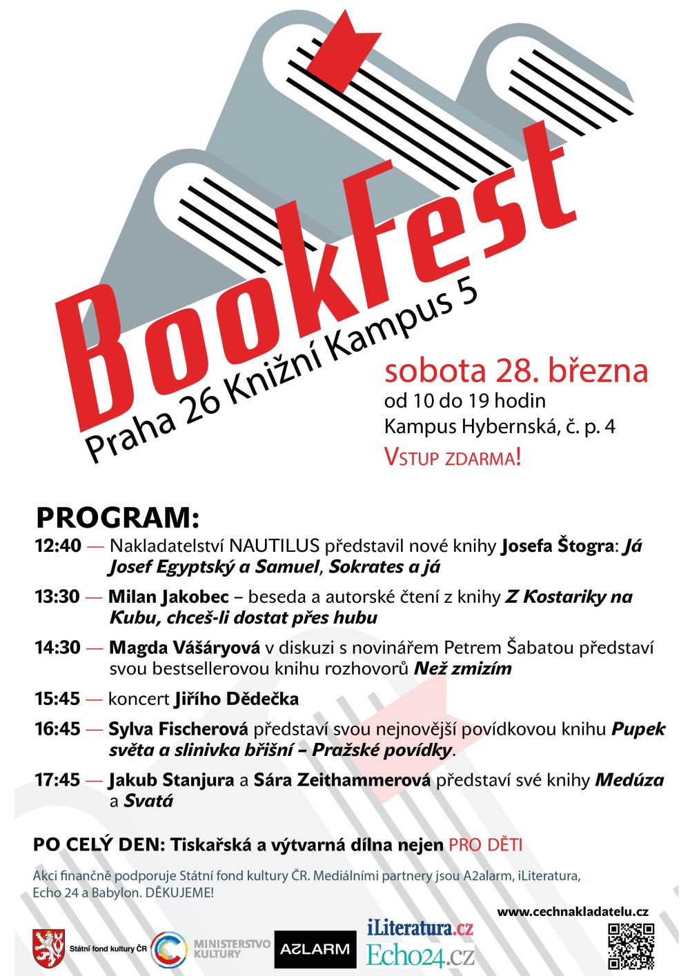 Archiv hlavního města Prahy se letos poprvé zúčastní knižního veletrhu BookFest Praha, jehož 5. ročník se uskuteční v sobotu 28. března 2026 v atraktivních prostorách Kampusu Hybernská na Novém Městě. Brány veletrhu se návštěvníkům otevřou v 10 hodin, možnost zavítat na letošní pražský BookFest potrvá až do 19. hodiny. Kromě knih vybraných nakladatelů kvalitní literatury na Vás čeká doprovodný program v podobě autorských čtení, setkání se spisovateli a workshopů. Vstup na festival je pro návštěvníky zdarma. (Více o veletrhu)